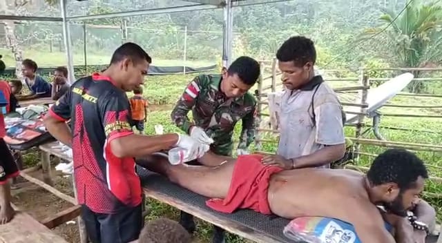 Keerom, Hariansinarbogor.com- Sungguh tragis apa yang dialami oleh Stepanus (26) yang menderita luka-luka di beberapa bagian tubuhnya akibat diserang babi hutan. Namun selamat karena Tim Kesehatan Satgas Pamtas RI-PNG Yonif 126/KC Pos Somografi dengan sigap mengobati warga tersebut di Kampung Somografi, Distrik Web, Kabupaten Keerom.