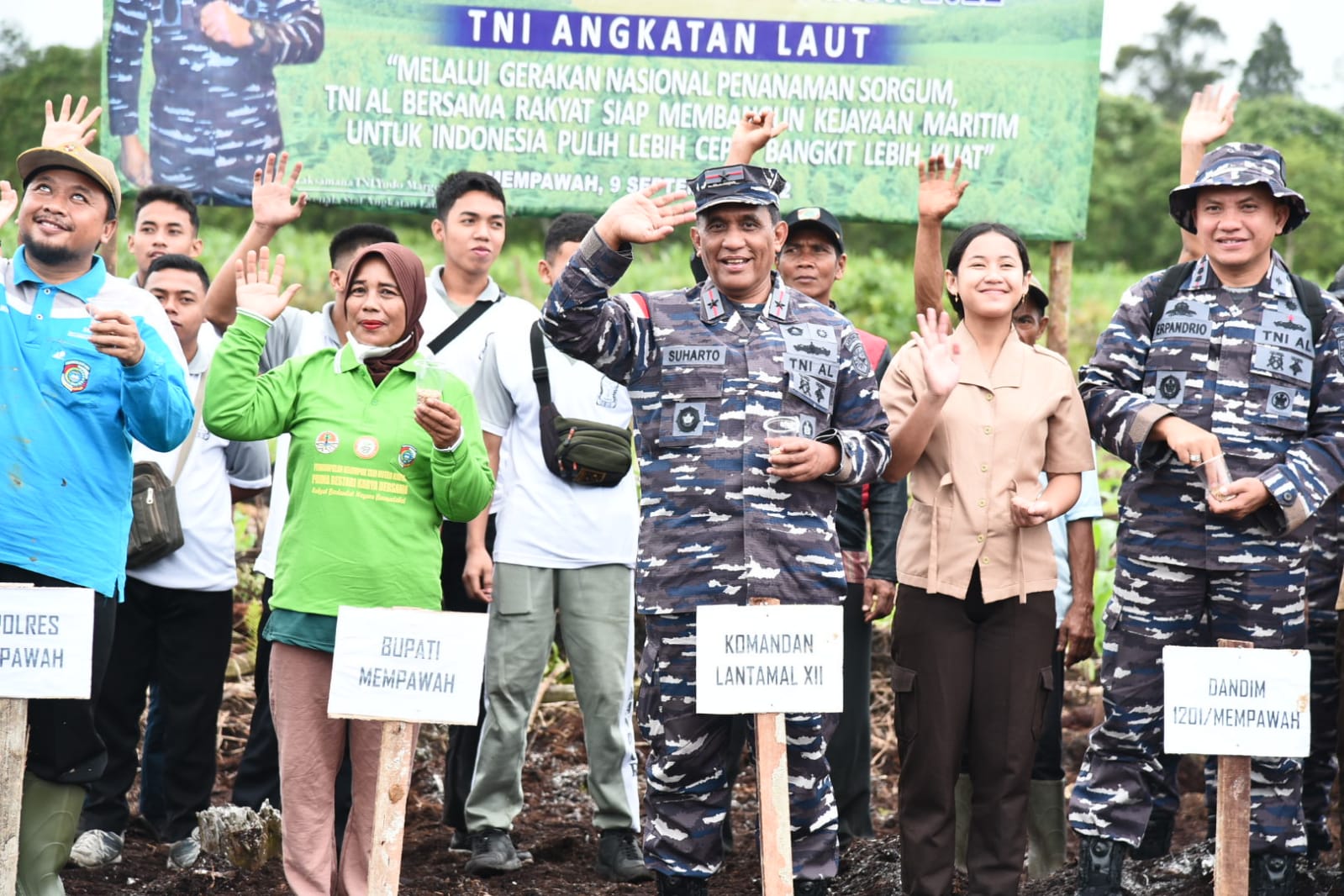 “Penanaman sorgum Tahun 2022 terpusat di Bogor dipimpin oleh Wamentan dan Wakil Kepala Staf Angkatan Laut, sementara di Kalimantan Barat ini Lantamal XII beserta TNI Polri yang ada di Kalimantan Barat khususnya kita di wilayah kecamatan Jongkat kabupaten Mempawah bekerjasama dengan kelompok tani Prima Bestari Karya bersama pemerintah daerah dalam hal ini Bupati, Camat, Kepala Desa, TNI Polri dan sebagainya untuk melaksanakan penanaman bersama,” jelas Danlantamal.