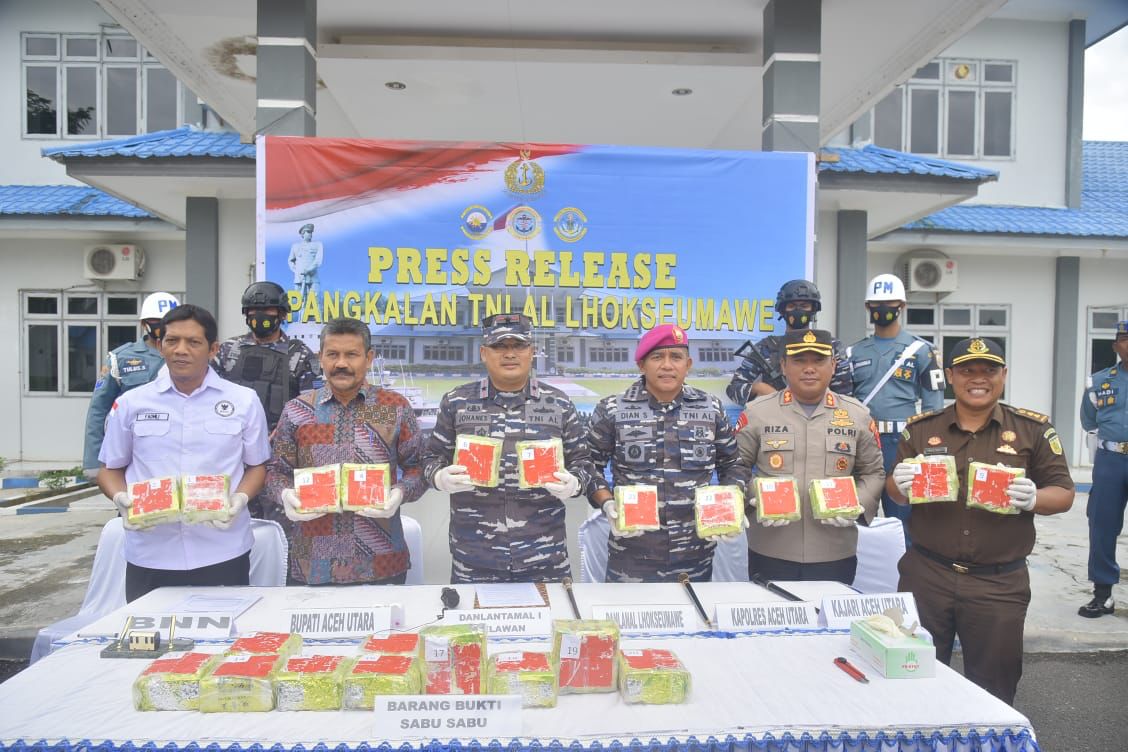 Penemuan Narkotika jenis Sabu sebanyak kurang lebih 22 Kg (22 bungkus) di Pantai Seunuddon Desa Lhok Puuk Kecamatan Seunuddon Aceh Utara oleh Tim TNI AL Lanal Lhokseumawe ini berawal dari informasi akan adanya barang (narkotika) masuk ke wilayah Aceh melalui laut, namun informasi terputus sampai dengan tertangkapnya 5 orang pelaku oleh BNN (52 Kg) dan Polres Aceh Utara (12+8 Kg).