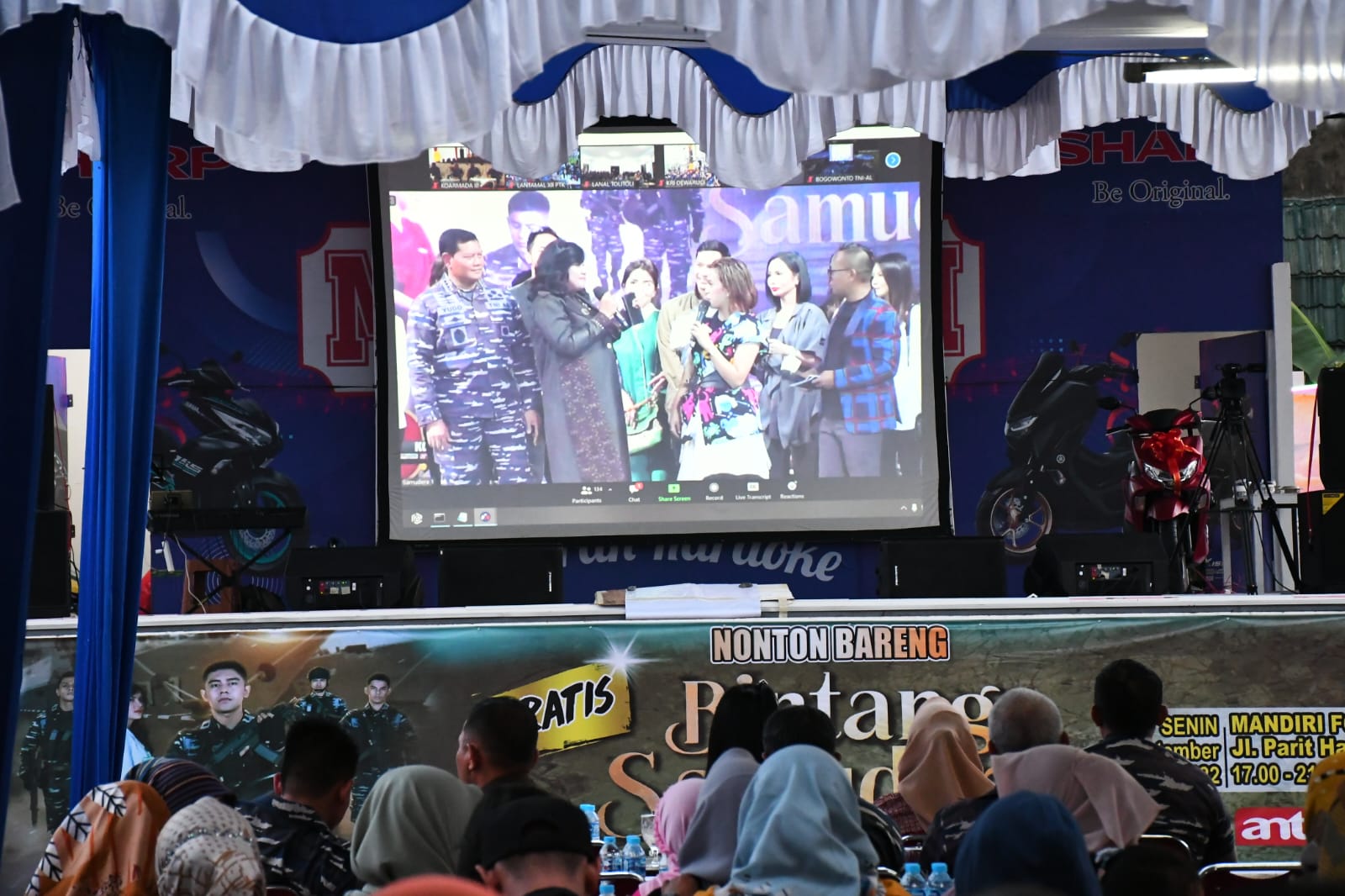 Selain ikut nobar, Kasal Laksamana Yudo Margono juga menyapa para prajurit di 77Β  pangkalan TNI ALΒ  lewat zoom, lalu dilakukan Seremonial Giant Banner dari geladak kapal KRI Dewaruci, meet and greet dengan artis Bintang Samudera.