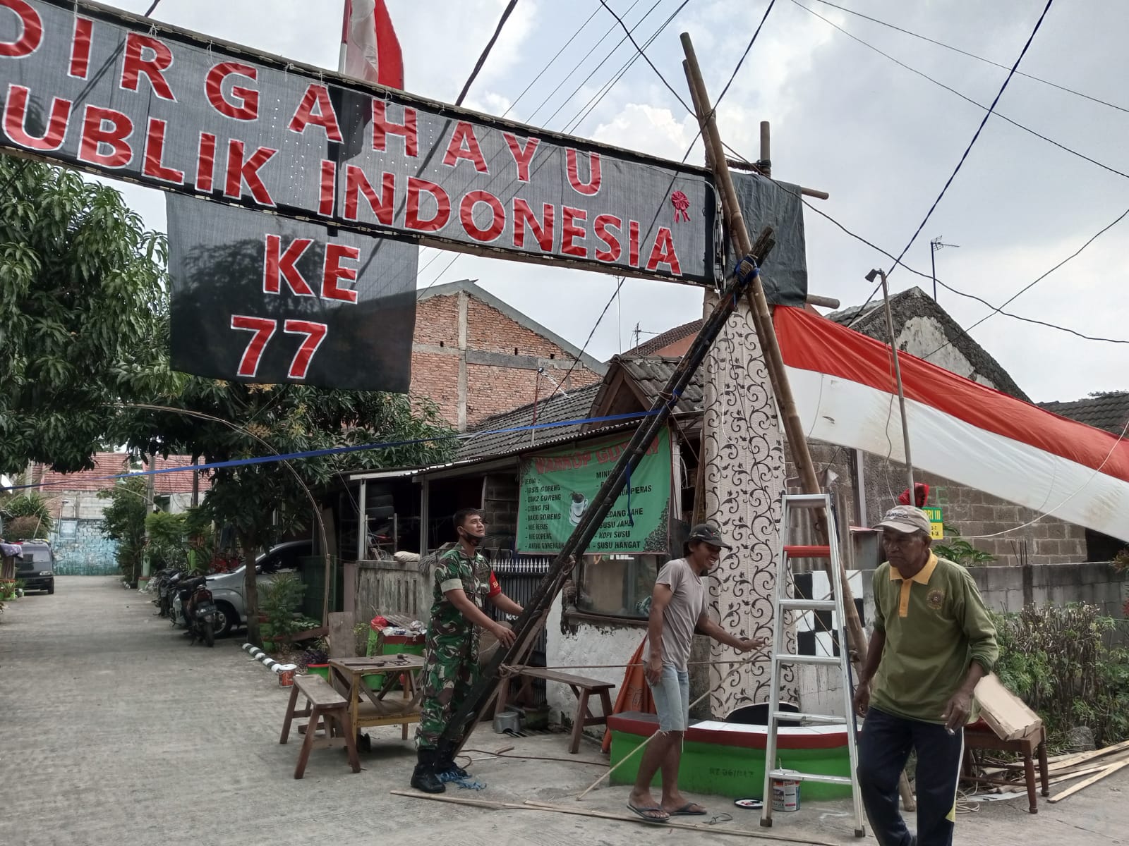 Perbaikan Gapura tersebut diikuti Babinsa Desa Mangun jaya Serka Rahmat, Ketua RW 017 Sujono