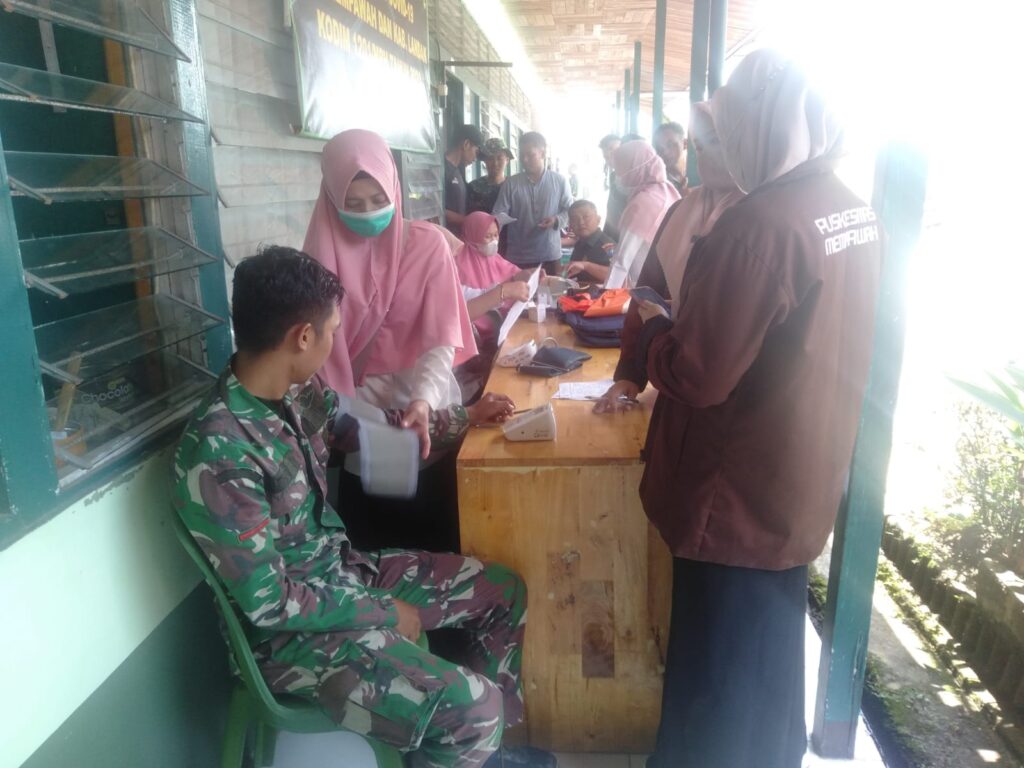 “Kegiatan screening kesehatan ini dilakukan dalam rangka pencegahan dan pengendalian Penyakit Tidak Menular (PTM) secara dini, dan mengetahui cara penanganannya seperti menjaga pola makan dan olahraga teratur,” ujar Pjs Pasiops Kodim 1201/Mph Kapten Arm Fauzi Syirat.