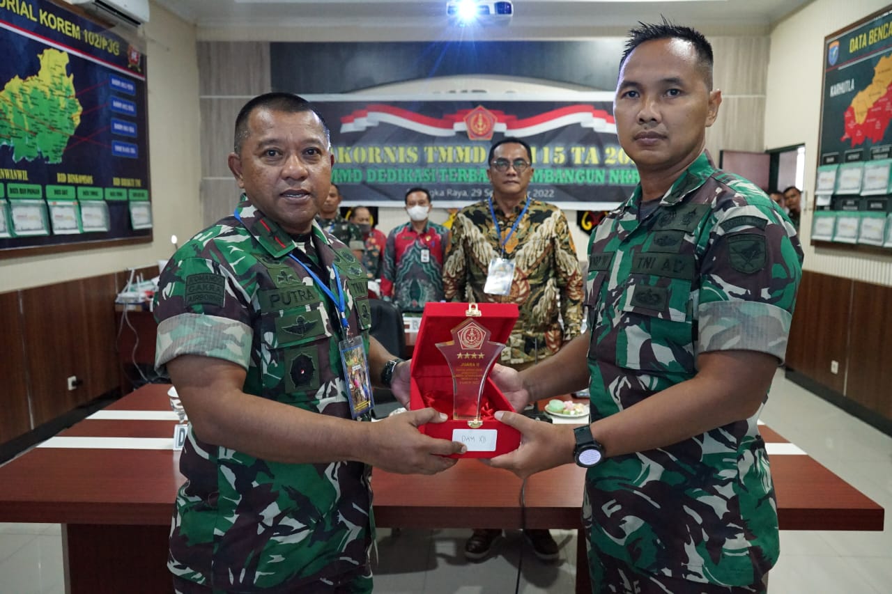 Piala dan piagam penghargaan dari Kasad Jendral TNI Dr. Dudung Abdurachman tersebut diserahkan oleh Danrem 102/Pjg, Brigjen TNI Yudianto Putrajaya, S.E., M.M., kepada Dandim 1012/Buntok, Letkol Inf Hendro Wicaksono selaku Dansatgas TMMD ke-114. (Pendam XII/Tpr)