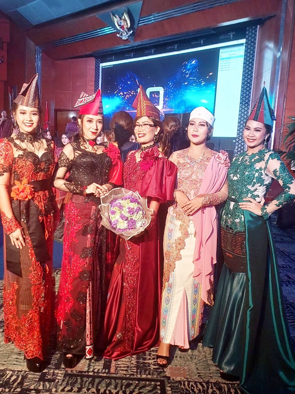 Nuansa Etnik dilihat dari kain rok (bawahan kebaya) yang memakai kain batik motif gorga Batak Toba, ulos Ragi Hotang dan Ulos Sadum.