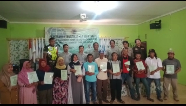 Hadir dalam Penyerahan Sertifikat PTSL Tersebut Ketua Ramli sutanto dan Staf.