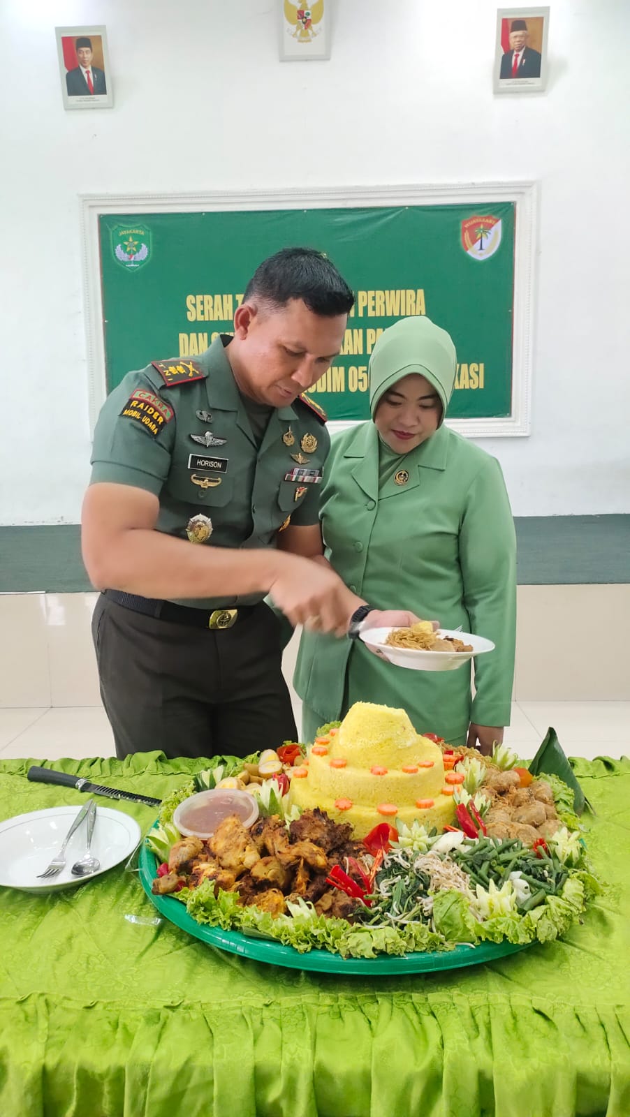 Serah Terima Jabatan dan Syukuran Kenaikan Pangkat Bintara dan Tamtama Kodim 0509/ Kabupaten Bekasi dan Tradisi Korps Purna Tugas tersebut di Hadiri oleh Mayor Inf Dasim Kasdim 0509/ Kab. Bekasi, SePasi Kodim 0509 Kabupaten Bekasi, Danramil Jajaran Kodim 0509/ Kab. Bekasi, Pers Ba dan Ta yang Naik Pangkat, PNS Kodim 0509/Kabupaten Bekasi, Ketua dan Pengurus persit Cabang XXIII Kodim 0509/ Kab.Bekasi