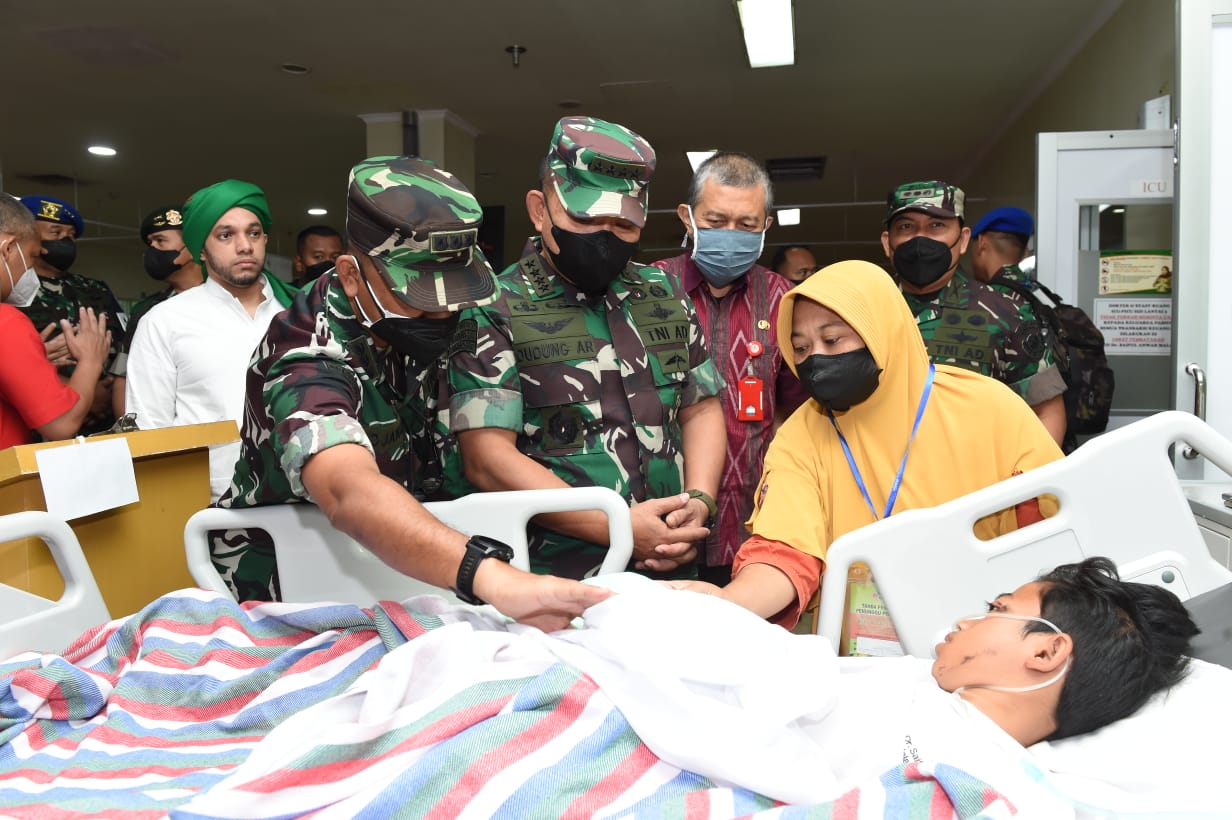 MALANG, (HSB)- Peristiwa di Stadion Kanjuruhan Malang pada Sabtu (1/10/2022) lalu, menjadi duka yang mendalam bagi seluruh masyarakat Indonesia. Kepala Staf Angkatan Darat (Kasad) Jenderal TNI Dr. Dudung Abdurachman sangat berempati atas kejadian tersebut. Kali ini, Kasad didampingi para pejabat TNI AD mengunjungi dan memberikan bantuan kepada korban yang dirawat di RSUD dr. Syaiful Anwar, termasuk juga keluarga korban yang meninggal dunia akibat peristiwa tersebut. Kamis, (6/10/2022).