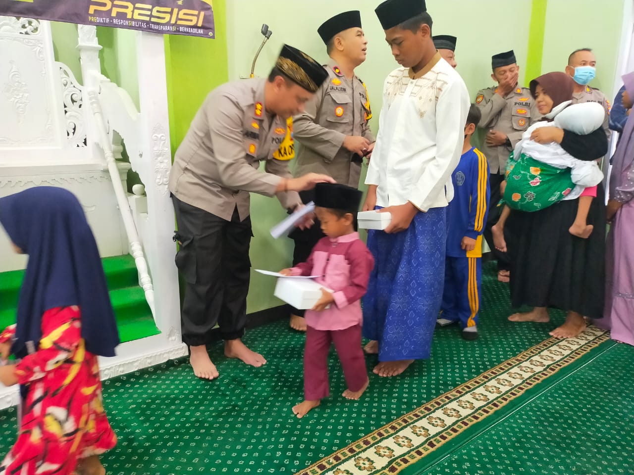 Acara peringatan Maulid Nabi Besar Muhammad SAW 1444 H tahun 2022 di Masjid Al-Rasyid Mapolres Sampang ditutup dengan pemberian uang santunan kepada 50 anak yatim yang berada di wilayah sampang kota oleh Kapolres Sampang AKBP Arman S.IK, M.Si.