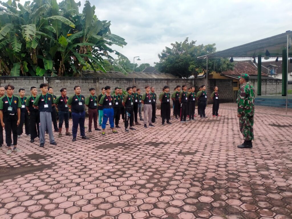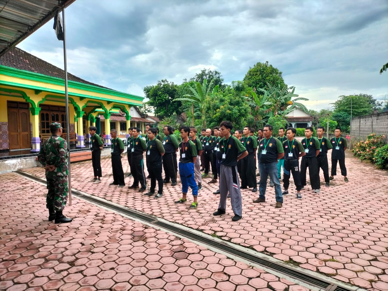 Blitar (HSB)- Anggota Koramil Tipe B 0808/06 Srengat Kodim 0808/Blitar Serma Hamdan Firdaus dan Sertu Ali Japar melaksanakan kegiatan pelatihan Peraturan Baris Berbaris (PBB) kepada peserta Diklatsar Banser Ponpes Salafiyah bertempat di halaman Masjid Baitussarif Desa Kerjen Kec. Srengat Kab. Blitar, Sabtu (8/10/2022).