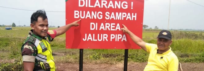 Setelah dilakukan Pembersihan sampah di lingkungan RW 02 untuk mencegah terjadinya Banjir dan wabah penyakit serta mencegah adanya ledakan pipa gas akibat pembakaran sampah, langsung kita pasang papan Larangan,” Tetur Pria Jebolan Batalion Kaveleri.