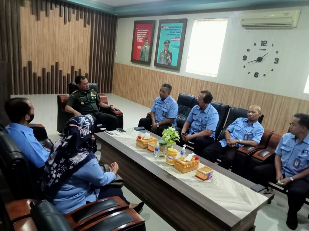 Madiun (HSB) – Kepala LPP RRI Madiun, Suroso bersama Staf bertandang ke Korem 081/DSJ, Rabu siang (12/10/2022).