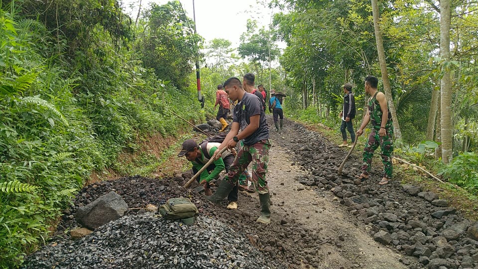 [Tasikmalaya, Jawa Barat] (HSB) – Anggota Satgas TMMD ke 115 kodim Tasikmalaya yakni anggota TNI dan masyarakat sekitar melaksanakan Pengaspalan jalan di desa Kp. Panyairan Ds. Cikadongdong Kec. Bojongasih.(13/10/2022)