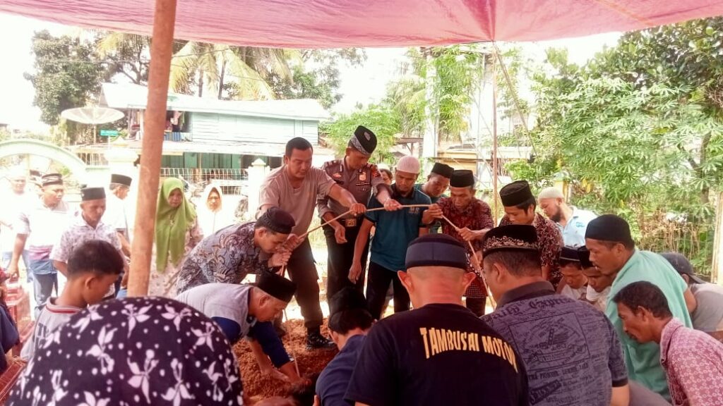 Terlihat Perwira, Eks Puar Humas Polres Rohul, berbaur deng Masyarakat Kelurahan Tambusai Tengah – Dalu-dalu Kecamatan Tambusai yang dimakamkan di Pemakaman Umum Simpang Benteng Dalu-dalu.
