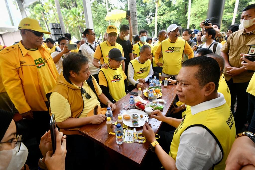 JAKARTA (HSB) – Ketua MPR RI sekaligus Wakil Ketua Umum Partai Golkar Bambang Soesatyo bersama Ketua Umum Partai Golkar Airlangga Hartarto, Ketua Dewan Pembina Partai Golkar Aburizal Bakrie, Ketua Dewan Kehormatan Partai Golkat Akbar Tanjung, pengurus, kader, dan simpatisan Partai Golkar, melakukan Jalan Sehat dalam rangka HUT ke-58 Partai Golkar. Start dari Plaza Tenggara Gelora Bung Karno dan finish di kawasan Senayan.