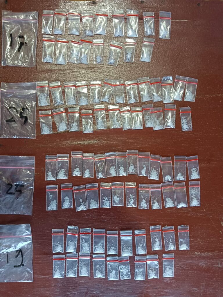 Barang Bukti yang berhasil disita terang Kompol Arry, terdiri dari tangan IN berupa empat paket plastik bening ukuran sedang terdapat butiran kristal diduga narkotika jenis sabu dengan jumlah keseluruhan 86 paket plastik bening ukuran kecil. “Dan setelah ditimbang berat kotor 7,8 Gram ” ujar Kompol Arry.
