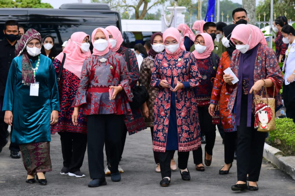 Jambi (HSB) – Ibu Iriana Joko Widodo didampingi Ibu Wury Ma’ruf Amin dan para anggota Organisasi Aksi Solidaritas Era Kabinet Indonesia Maju (OASE KIM) meninjau sosialisasi pemeriksaan payudara sendiri (SADARI) dalam kunjungan kerjanya ke Provinsi Jambi, pada Kamis, 20 Oktober 2022. Sosialisasi yang digelar di halaman Rumah Dinas Gubernur Jambi, Kota Jambi, tersebut dilakukan dalam rangka memperingati bulan peduli kanker payudara (breast cancer awareness month).