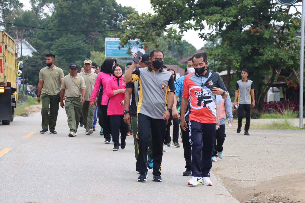 Olahraga bersama diawali jalan sehat menempuh start halaman Mapolres Sekadau – Jl. Merdeka timur – jembatan Penanjung lama dan kembali ke Mapolres sekadau.