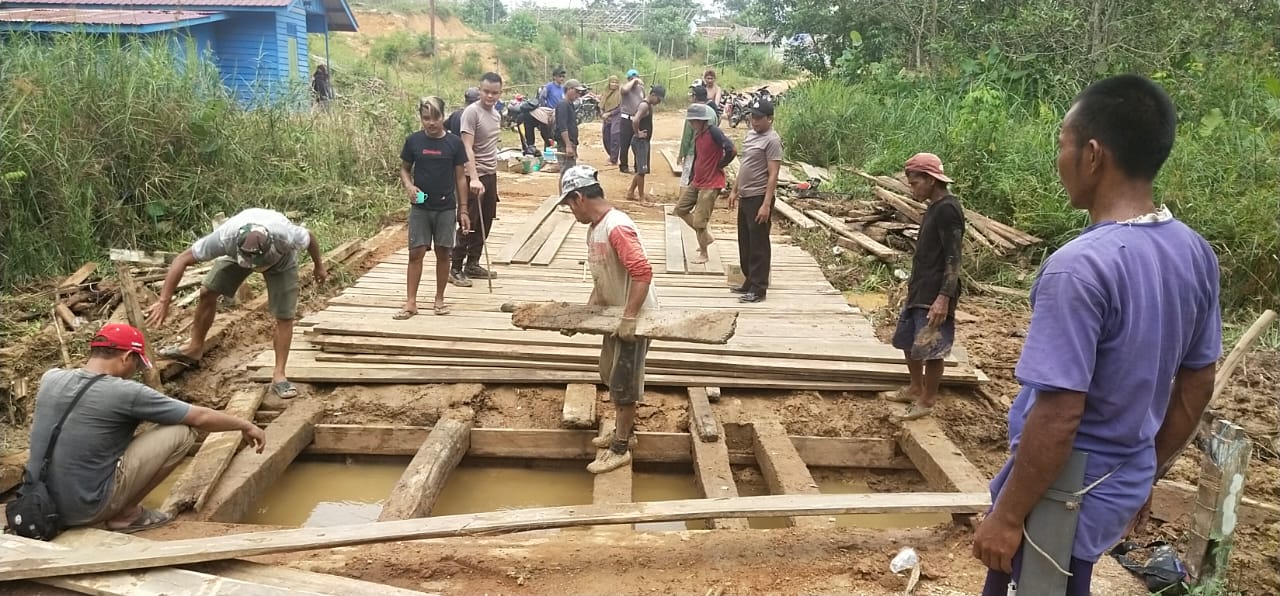 Personil Polsek Ketungau Hulu Bersama Warga Desa Senaning Laksanakan Kerja Bakti Perbaiki Jembatan Yang Rusak