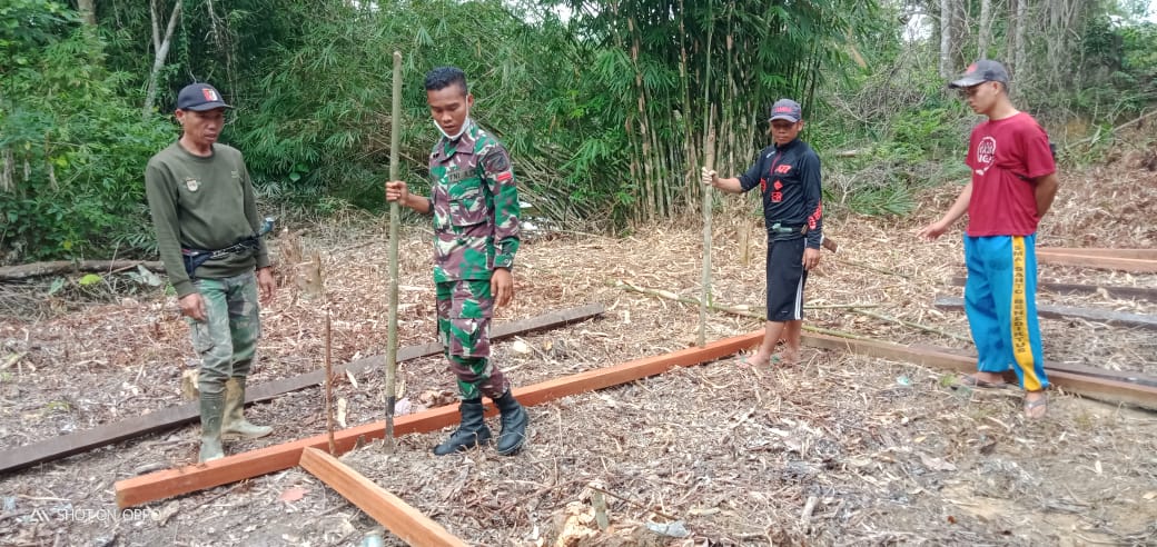 Sanggau, Kalbar (HSB) – Satuan Tugas Pengamanan Perbatasan RI-Malaysia Yonif 645/Gardatama Yudha wilayah sector barat Kalbar Pos Sei Daun SSK 3 dipimpin Serda Helmi beserta 2 (dua) orang anggota bersama dengan warga masyarakat dusun Malenggang melakukan Karya bhakti pembuatan pondok Tempat Pemakaman Umum (TPU), bertempat di Dusun Malenggang Desa Malenggang Kecamatan Sekayam Kabupaten Sanggau.