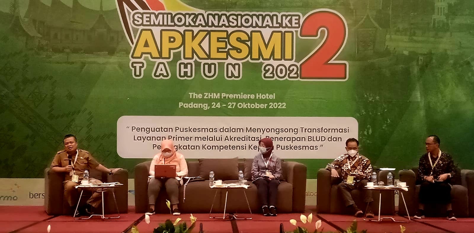 KOTA PADANG (HSB) – Semiloka Nasional ke-2 Akselerasi Puskesmas Indonesia (Apkesmi) dilaksanakan secara hybrid pada tanggal 24 s.d. 27 Oktober 2022. Semiloka Nasional Apkesmi ke-2 ini mengambil tema: βPenguatan Puskesmas dalam menyongsong Transformasi Layanan Primer melalui Akreditasi, Penerapan BLUD dan Peningkatan Kompetensi Kepala Puskesmasβ.