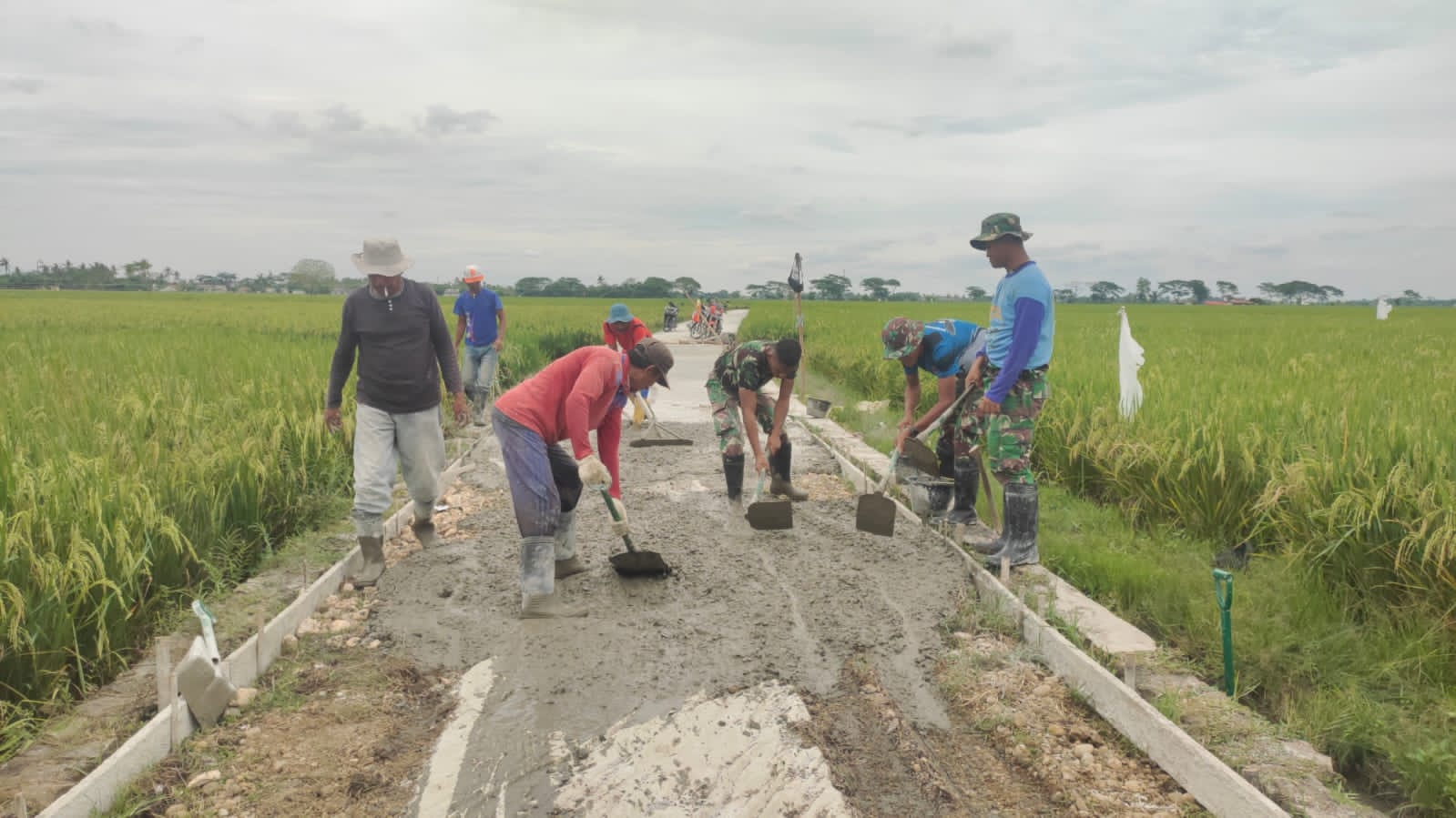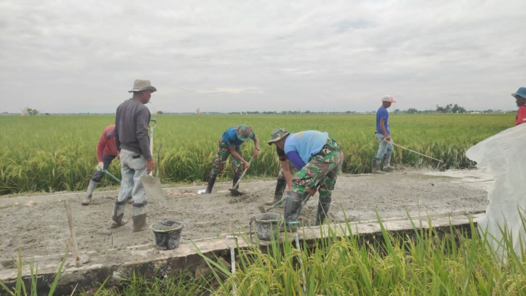Bekasi (HSB) – Program TNI Manunggal Membangun Desa (TMMD) Desa Kertajaya Kecamatan Pebayuran memasuki Tahap II Pengecoran.