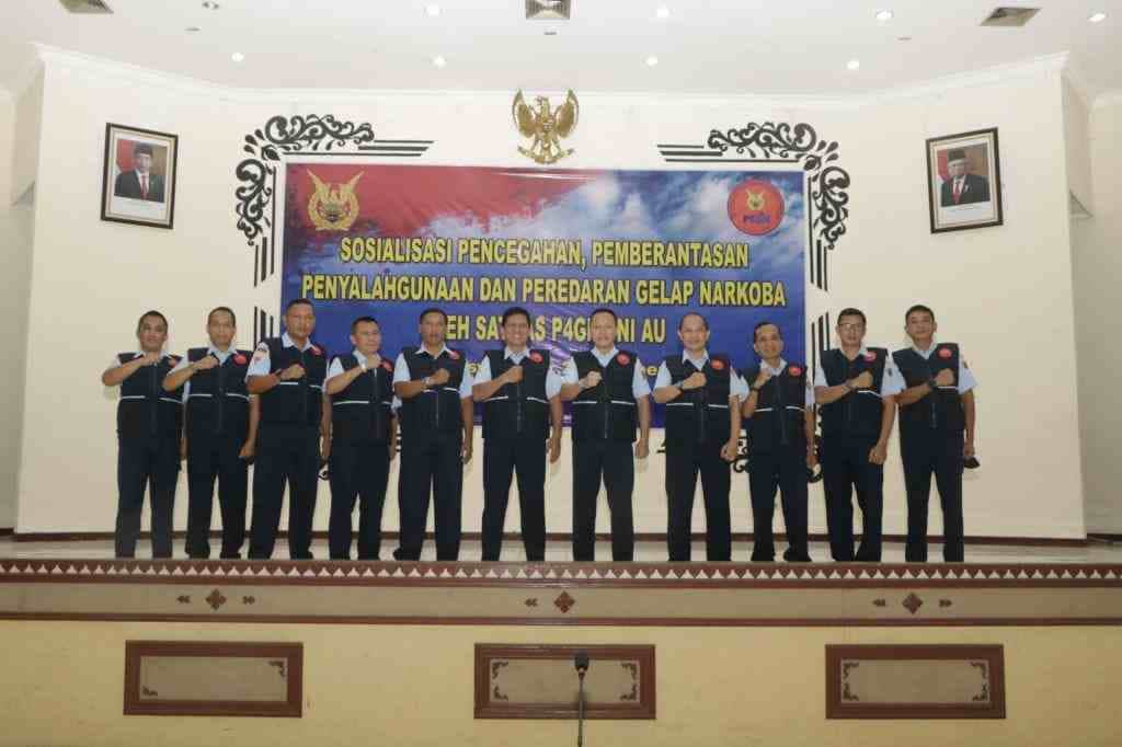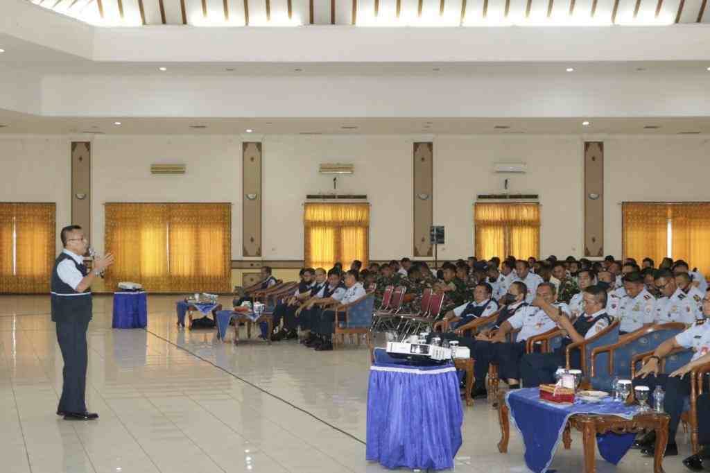 Magetan (HSB) – Wakil Asisten Personel (Waaspers) Kasau Marsekal Pertama TNI Mujianto, ST., M.Tr (Han)., selaku Penanggungjawab Tim Sosialisasi/Kampanye Satgas Pencegahan, Pemberantasan, Penyalahgunaan dan Peredaran Gelap Narkoba (P4GN) TNI AU menegaskan agar personel Lanud Iswahjudi hendaknya menghindari narkotika sebagai musuh berbahaya manusia dan perusak masa depan generasi muda bangsa di Graha Dewanto, Lanud Iswahjudi, Magetan Kamis (27/10)