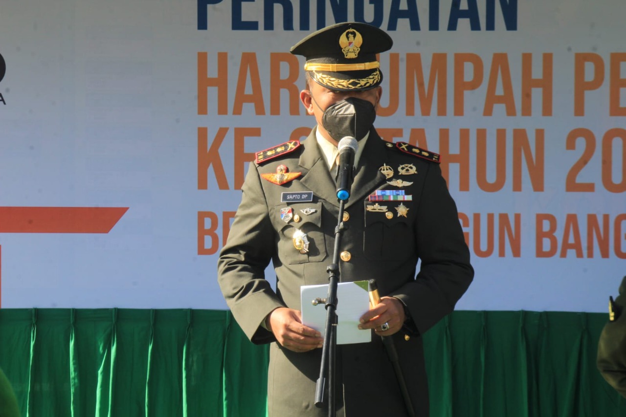 Dandim 0808/Blitar saat membacakan amanat Menpora Republik Indonesia mengucapkan segala puji kita panjatkan kehadirat Allah, Tuhan Yang Maha Kuasa atas rahmat dan karunia-nya, pada hari ini 28 Oktober 2022 kita bersama memperingati hari sumpah pemuda yang ke-94, dengan tema β€œBersatu Bangun Bangsa”.