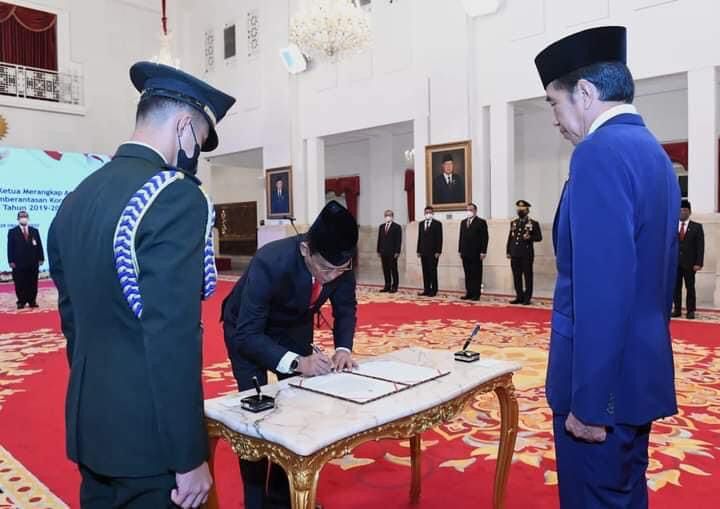 “Saya berjanji bahwa saya akan setia kepada dan akan mempertahankan serta mengamalkan Pancasila sebagai dasar negara, Undang-Undang Dasar Negara Republik Indonesia Tahun 1945 serta peraturan perundang-undangan yang berlaku bagi Negara Republik Indonesia,” ujar Johanis Tanak membacakan penggalan janji di hadapan Presiden Jokowi.