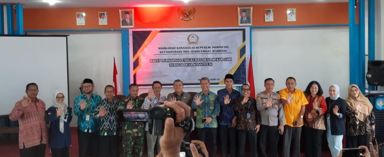 β kami akan ikut serta dalam menyukseskan pengukuhan Desa Mekar Sari menjadi Desa Konstitusi oleh MK yang diagendakan pada tanggal 13 November 2022 nanti, dimana baru ada lima Desa se-Indonesia termasuk nantinya Desa Mekar Sari, terangnya.