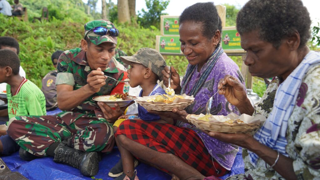 β€œMereka semua warga masyarakat di Kampung Malaum Batu Lobang Distrik Makbon, Kab. Sorong ini juga berhak untuk mendapatkan asupan makanan yang bergizi, sama dengan yang kita nikmati”ungkap Danrem 181/PVT.