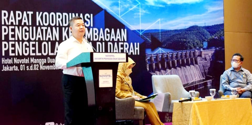 Jakarta (HSB) – Direktur Jenderal Bina Pembangunan Daerah (Dirjen Bina Bangda) Kementerian Dalam Negeri (Kemendagri) Teguh Setyabudi menyampaikan sinergi kebijakan peningkatan infrastruktur Sumber Daya Air (SDA) dan penguatan kapasitas kelembagaan pengelolaan merupakan bagian yang tidak dapat dipisahkan dalam mewujudkan capaian target Kebijakan nasional peningkatan infrastruktur SDA. Hal itu disampaikan pada Rapat Koordinasi Penguatan Kelembagaan Pengelolaan Sumber Daya Air di Daerah Tahun Anggaran 2022 yang dilaksanakan di Hotel Novotel Mangga Dua Square, Selasa (1/11).