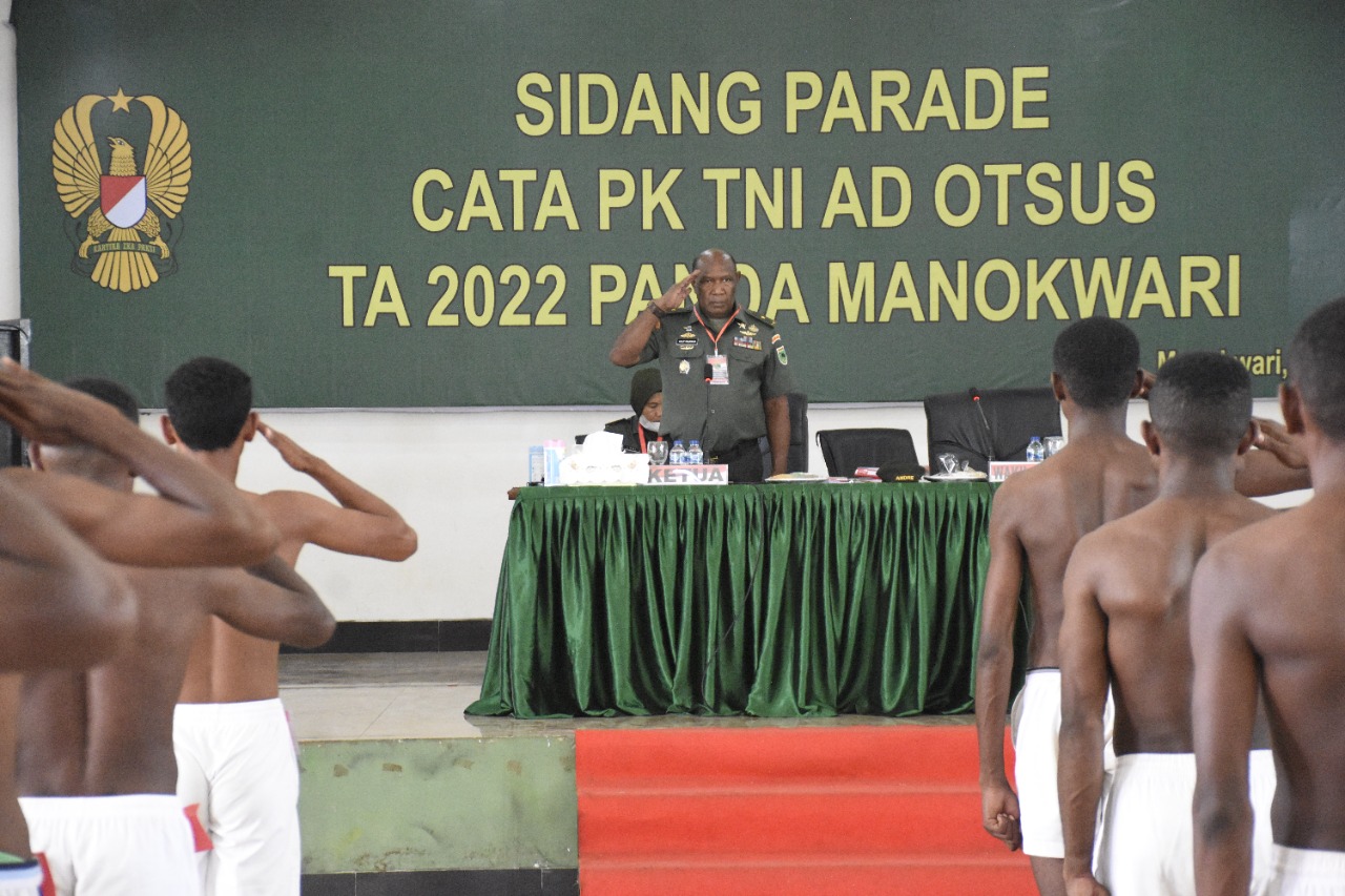 Manokwari (HSB) – Kasdam XVIII/Kasuari, Brigjen TNI Yusuf Ragainaga, pimpin langsung Sidang Parade Calon Tamtama (Catam) Otsus, Reguler dan Keagamaan TA. 2022 Panda Manokwari.