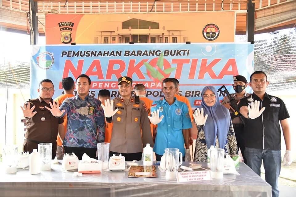 Bireuen (HSB) – Polres Bireuen Melalui Satuan Reserse Narkoba melakukan Pemusnahan Barang Bukti Narkotika Jenis Sabu seberat 1.485,72 Gram