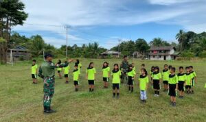 Sintang (HSB) – Jum’at (4/11/22) – Gunakan metode outdoor learning atau pembelajaran di luar ruangan, Satgas Yonarmed 19/Bogani menanamkan wawasan kebangsaan kepada siswa-siswi di SDN 15 Riam Sejawak, Ketungau Hulu, Sintang. Hal ini dilakukan untuk mewujudkan generasi penerus yang berwawasan dan berkarakter kebangsaan yang tinggi.