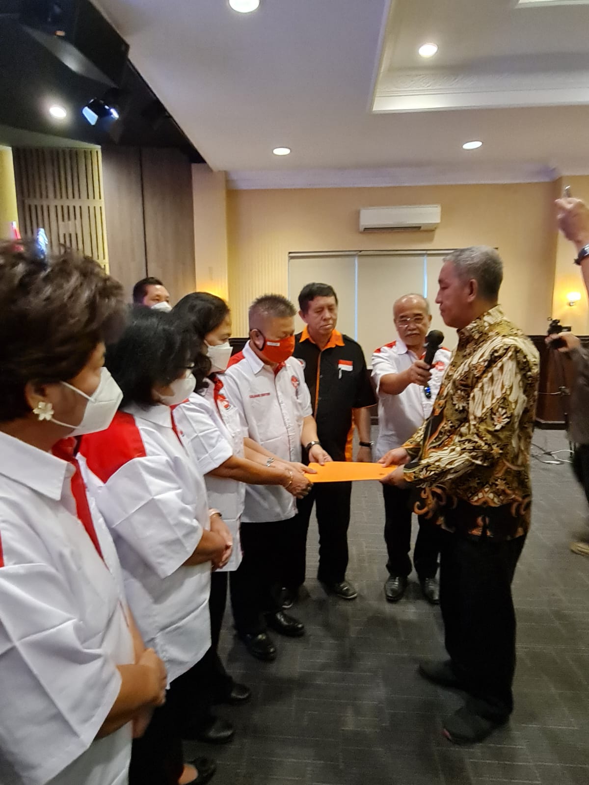Pdt. Dr. Ir. Hengky Narto Sabdo,SH.,M.Th., M.M., Sekretaris Umum BAMAG LKKI membacakan surat keputusan pelantikan kepengurusan BAMAG LKKI Provinsi Jawa Barat periode 2022-2027.