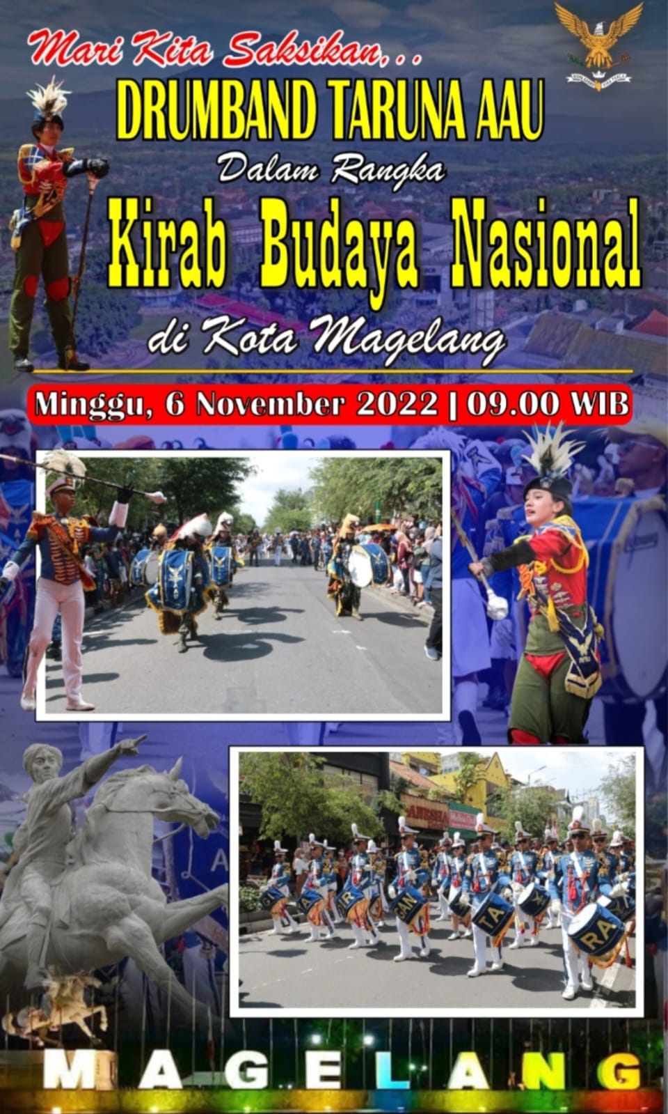 Magelang (HSB) – Taruna AAU kembali akan unjuk kebolehan dengan Drumband-nya di Pusat Kota Magelang . Atraksi Drumband Taruna AAU kali ini akan memeriahkan Pentas Seni dan Kirab Budaya Nusantara (Pendatara). Para Karbol (Taruna AAU) akan mengawali pelaksanaan Kirab Seni Budaya Nusantara yang sudah ditunggu-tunggu kawula muda.