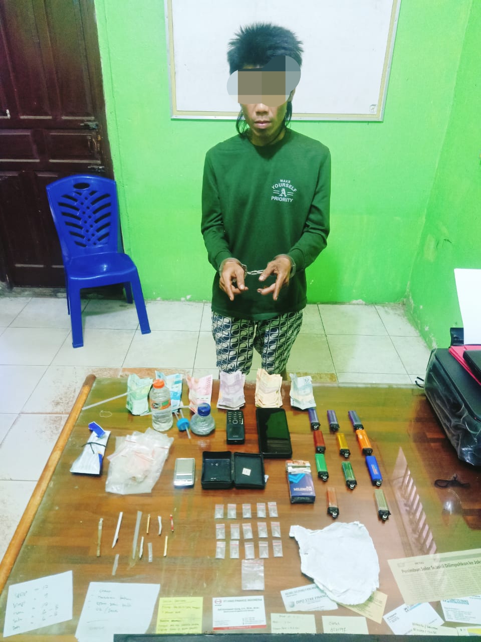 “Kapas serta Plastik Bening Paketan sekitar 30 Lembar, Satu Alat Timbangan untuk menimbang Narkotika Jenis Sabu, Dua Alat Hisap Bong Narkotika Jenis Sabu dan Uang Tunai sejumlah Rp. 700.000,” rincinya.
