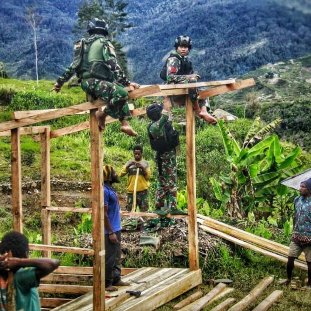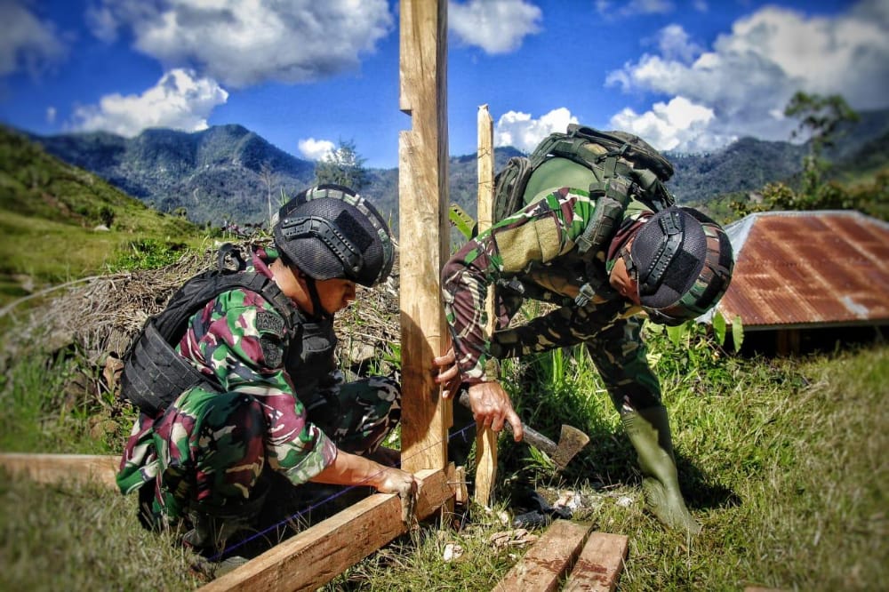 Papua (HSB) – Wujudkan karya nyata dalam membantu mengatasi kesulitan rakyat, Pos Kotis Satgas Yonif Raider 321/GT/13/1 Kostrad membangun pondok air bersih di Distrik Mbua, Kabupaten Nduga, Papua.