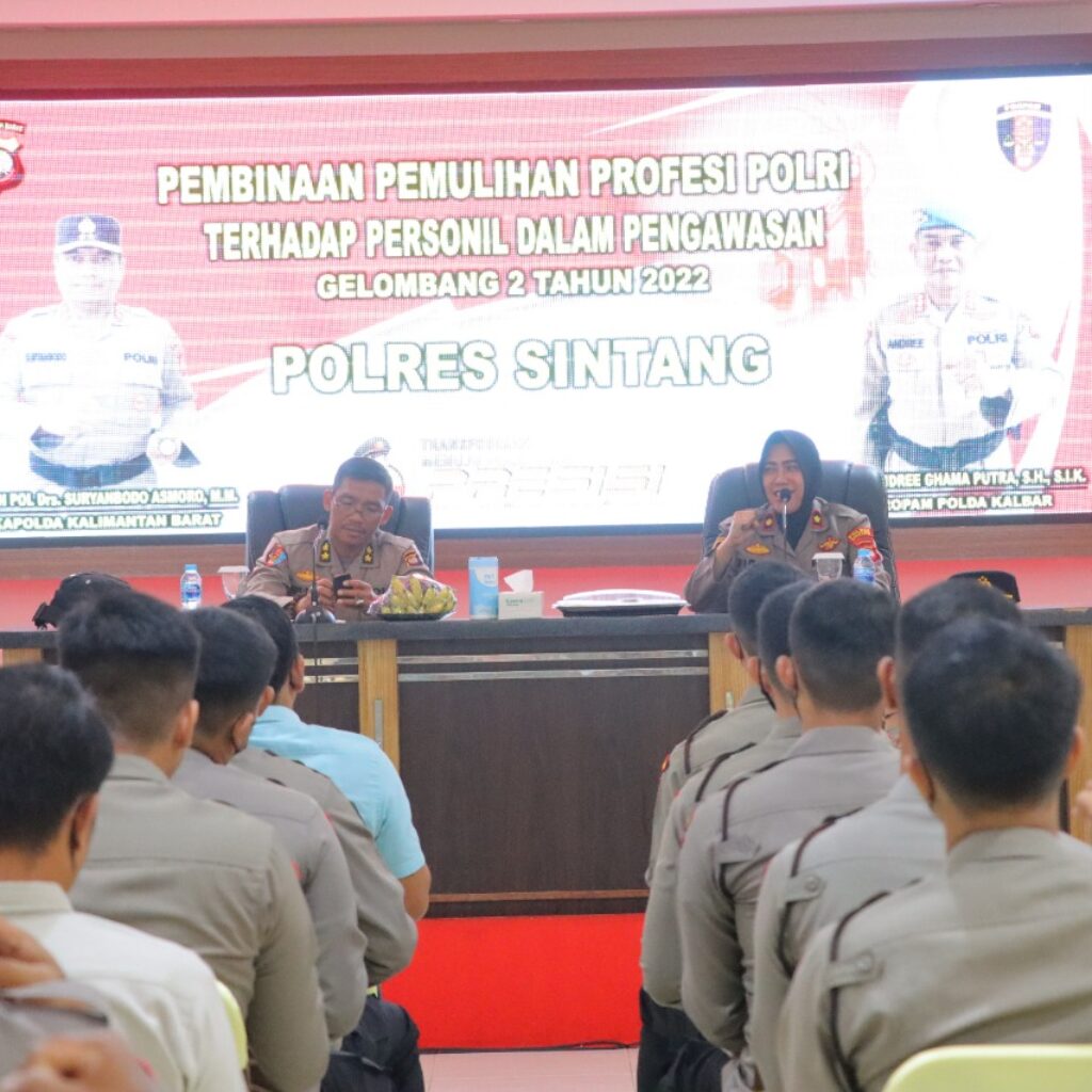 Sintang, Kalbar (HSB) – Bid Propam Polda Kalbar Laksanakan Pembinaan Pemulihan Profesi Polri Terhadap Personil Dalam Pengawasan di Polres Sintang, Rabu (9/11).