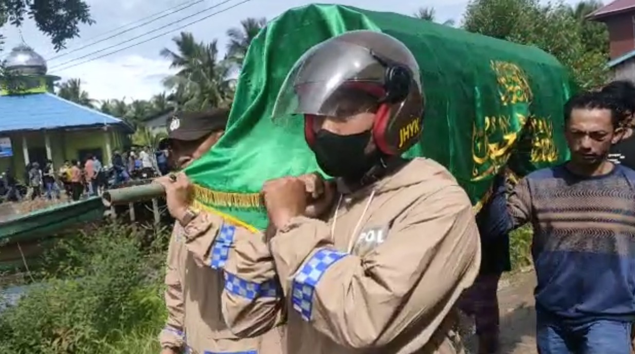 Tidak berhenti disitu saja, bentuk rasa empati oleh personil Polsek Batu Ampar kepada keluarga korban yakni memikul keranda almarhumah Nazwa ke tempat peristirahatan terakhir.