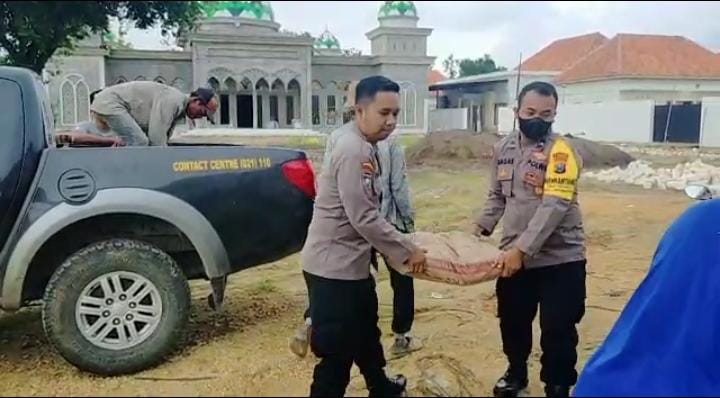 Polsek Robatal Kirim Semen Bantu Masyarakat Bangun Jembatan Masuk Pondok Pesantren