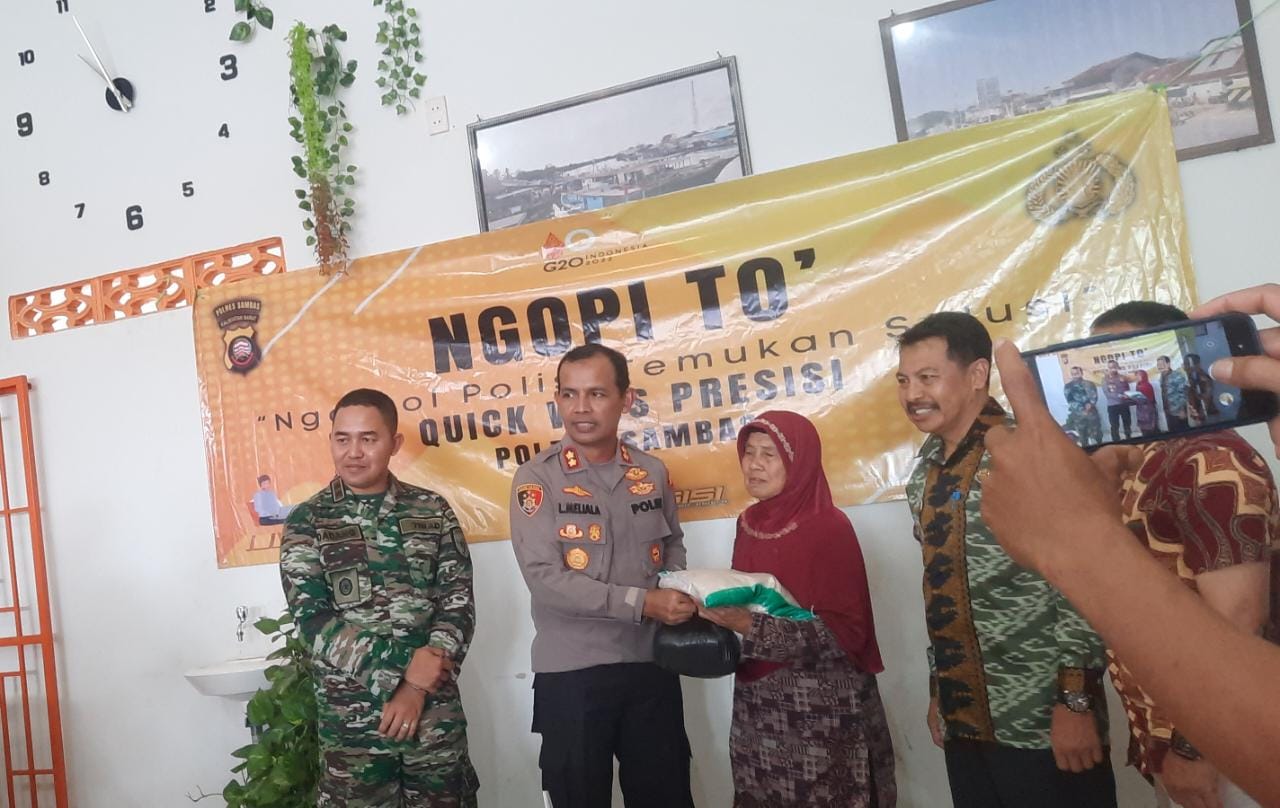 Sambas, Kalbar (HSB) – Di Warkop Silfi_63 Desa Parit Baru Kecamatan Selakau Kabupaten Sambas telah dilaksanakan kegiatan dalam rangka mendukung Program Quick Wins Presisi Polres Sambas berupa Ngobrol Polisi Temukan Solusi (Ngopi To’).11 November 2022.