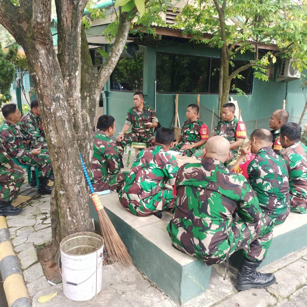 Bekasi (HSB) – Sebagai bentuk penerapan disiplin dalam hal pengawasan terhadap para anggotanya, Danramil 11 Pebayuran Kodim 0509/Kabupaten Bekasi Kapten CHb Ibrahim memberikan pengarahan/Jam Komandan kepada seluruh anggota yang bertempat di Kantor Makoramil 11/Pebayuran Jalan Raya Pebayuran Kecamatan Pebayuran, Kamis, 17/11/2022)