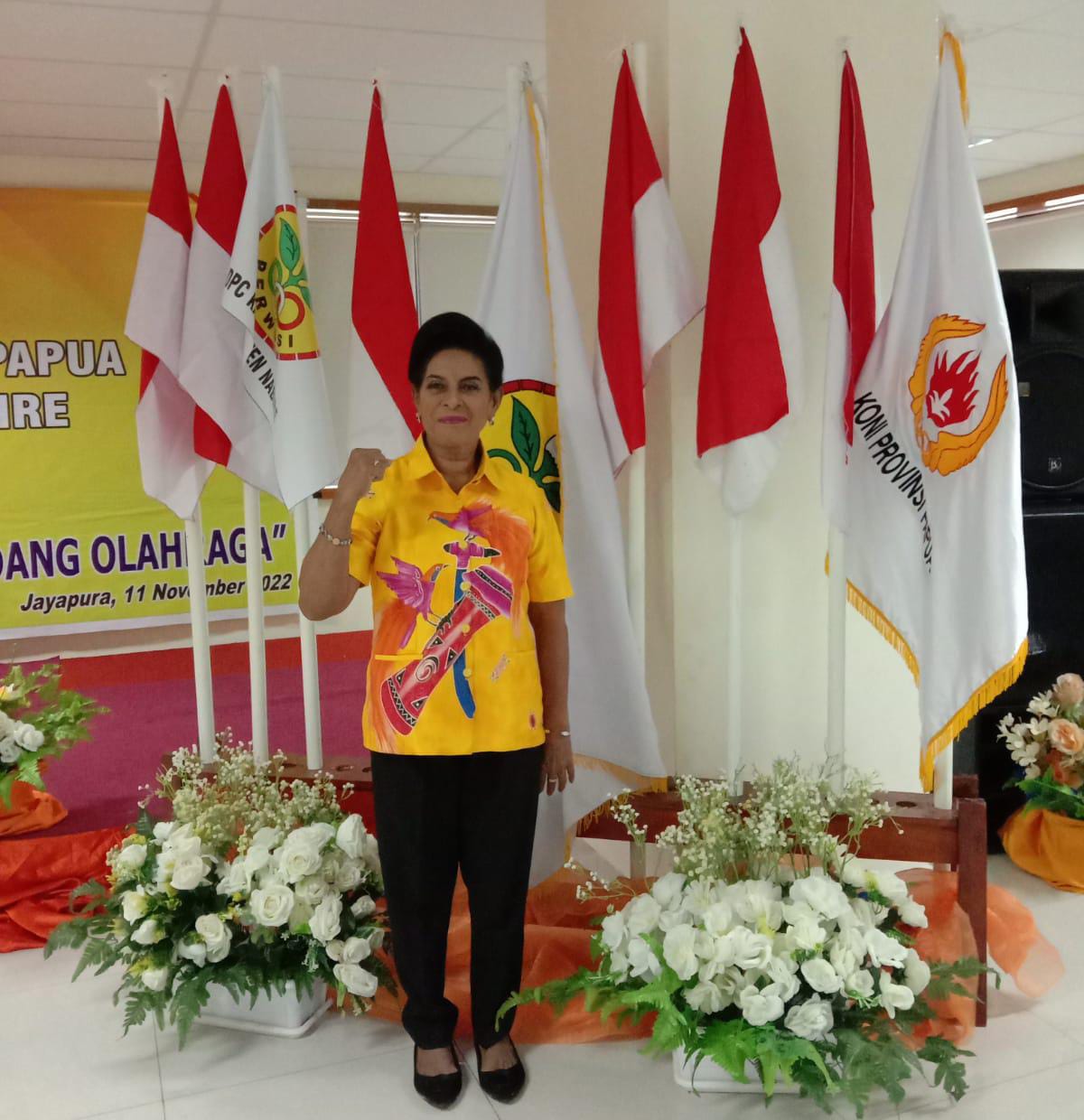 Jayapura | (HSB) – Kamis 11 November 2022 pekan lalu bertempat di Aula Wisma Atlit Mandala Jayapura Papua Ketua Koni Provinsi Papua diwakili Wakil Ketua III Drs. Elia I Loupatty, MM melantik Telma Bv Numberi S.Sos. MM sebagai Ketua Perwosi Provinsi Papua dan pengurus sebanyak 55 anggota. Pelantikan ini berdasarkan mandat dari DPP Petwosi.