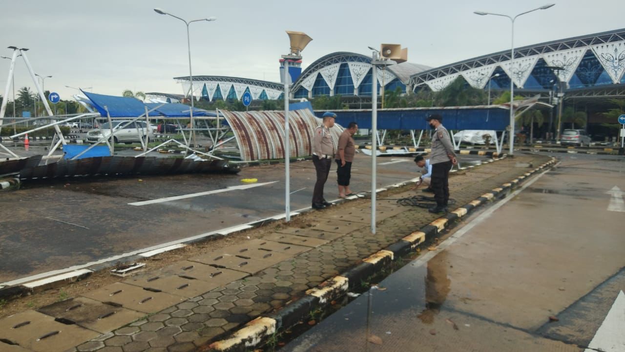 “Akibat dari robohnya kanopi serta tiang penyangganya dan 1 buah tiang lampu penerangan jalan tersebut, tidak ada korban jiwa maupun kerusakan pada kendaraan pengguna fasilitas bandara, kejadian ini hanya menyebabkan kerugian materiil dengan estimasi puluhan juta rupiah,” ujarnya.