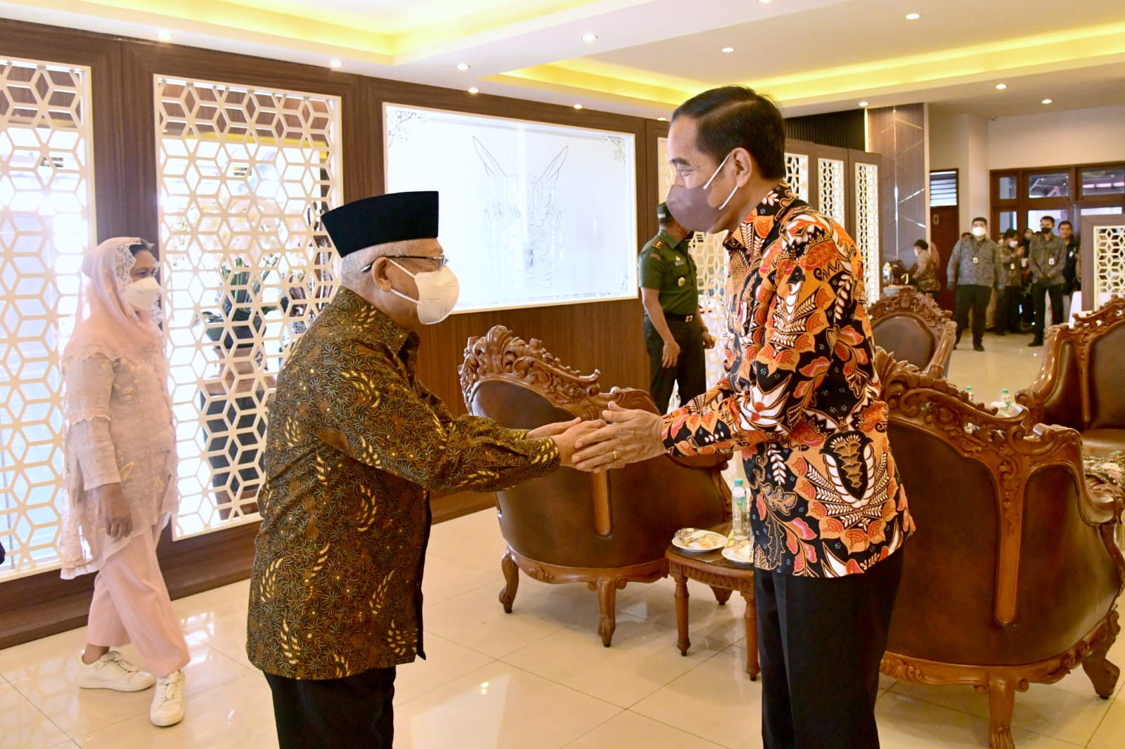 Surakarta (HSB) – Siang ini, Wakil Presiden (Wapres) K.H. Maβruf Amin bertemu dengan Presiden Joko Widodo (Jokowi) di Pangkalan Udara TNI AU Adi Soemarmo, Kabupaten Boyolali, Jawa Tengah, Senin, (21/11/2022). Kedua pemimpin bertemu di ruang tunggu VVIP sesaat sebelum lepas landas menuju Pangkalan Udara TNI AU Halim Perdanakusuma, Jakarta, usai melaksanakan kunjungan kerja di Surakarta.