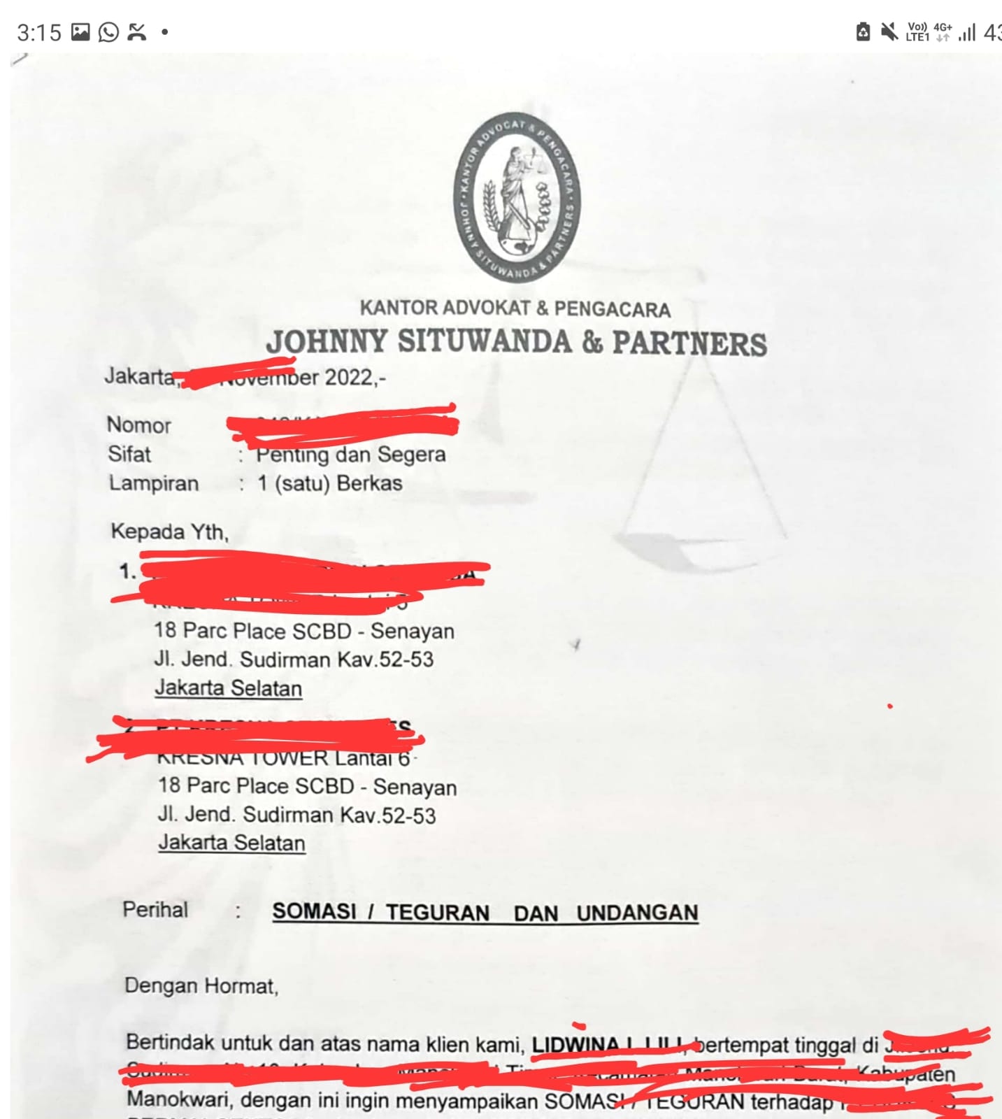 Kendati demikian Ucap Advokat Johnny Situwanda mengenai hal ini dapat dibuktikan dengan tidak dilaksanakannya Homologasi yang sudah dijanjikan bahkan Laporan Polisi dari Kreditor lain infonya-pun jalan ditempat.