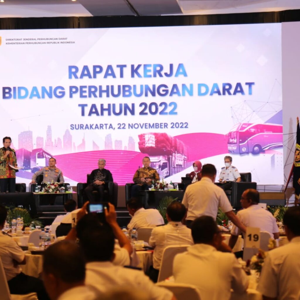 SURAKARTA (22/11) HSB – Guna memperkuat sinergi antar instansi pemerintah baik di sektor transportasi darat, Direktorat Jenderal Perhubungan Darat Kementerian Perhubungan menggelar kegiatan Rapat Kerja Bidang Perhubungan Darat Tahun 2022 di Convention Hall Terminal Tipe A Tirtonadi Kota Surakarta pada Selasa (22/11).