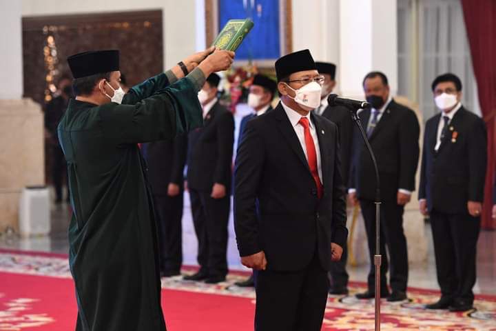 Jakarta (HSB) – Presiden Joko Widodo melantik Muhamad Mardiono sebagai Utusan Khusus Presiden Bidang Kerja Sama Pengentasan Kemiskinan dan Ketahanan Pangan di Istana Negara Jakarta, pada Rabu, 23 November 2022.