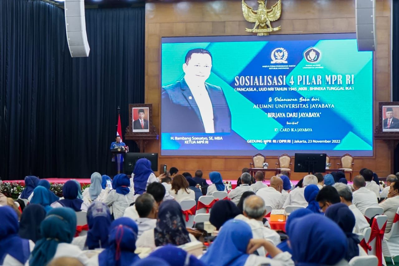 “Organisasi alumni berperan sebagai katalisator, kontributor, serta referensi dan inspirasi. Sebagai katalisator, alumni menjadi cerminan citra kampus yang memiliki tanggungjawab moral untuk bersama-sama menjaga nama baik almamater. Sebagai kontributor, alumni dapat menjadi kepanjangan tangan almamater untuk memperluas jaringan kampus. Sedangkan sebagai referensi dan inspirasi, alumni berperan memberikan banyak kesempatan forum informasi dunia kerja dan usaha (job fair) yang dapat membantu penyerapan angkatan kerja,” ujar Bamsoet dalam Sosialisasi Empat Pilar MPR RI bersama IKA Jayabaya, di Gedung Nusantara IV MPR/DPR/DPD RI, di Jakarta, Rabu (23/11/22).